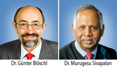 Dr. Blöschl and Dr. Sivapalan have launched a ground-breaking new paradigm for water management studies in the emergent Anthropocene. Named Sociohydrology, this is a new validated approach for studying the dynamic interactions and bi-directional feedbacks between water systems and people. It allows predictions on a scale of many decades to be made in a changing environment by considering the effects of societal actions on hydrology and the effects of hydrological phenomena on societal development. Through their joint efforts, Drs Blöschl and Sivapalan have demonstrated the power of this approach for the prediction of long-term human-flood dynamics. Their work is increasingly important for addressing many vexing water management challenges in the face of population growth and climate change.